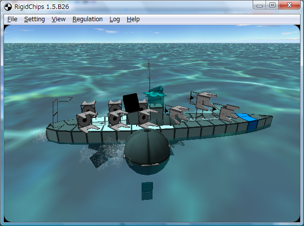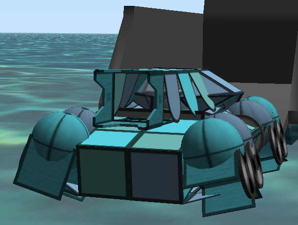 チップ制限によって砲塔は一つしかないが、その分高い火力と防御力を小さな艦体で実現しており、中心部さえ生き残れば安定して移動可能である。 RoboCraftにおける戦車とホバーが連携した戦闘を見て思いついたらしい。